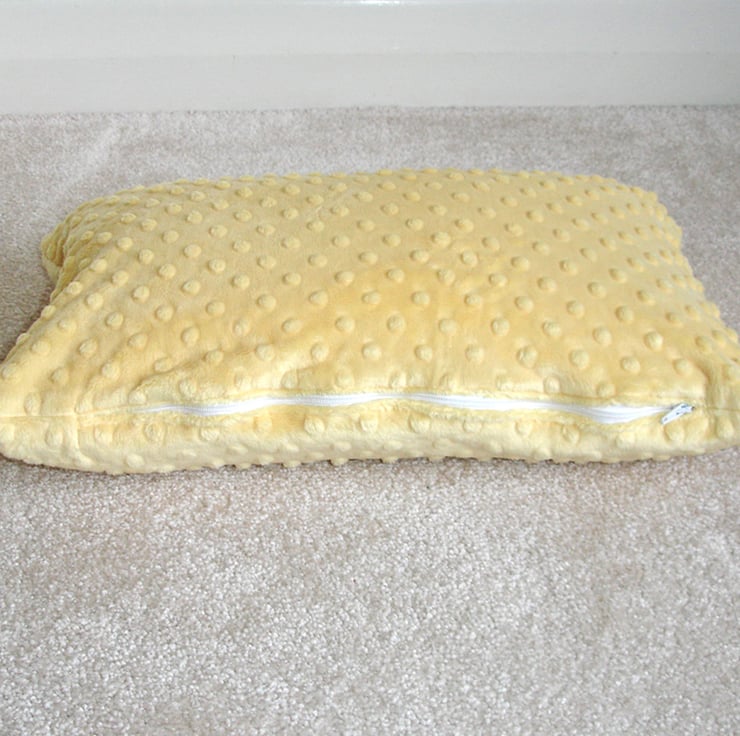 A beautifully soft ' Cuddlesoft ' plush minky fleece fabric with tactile raised spots in yellow.