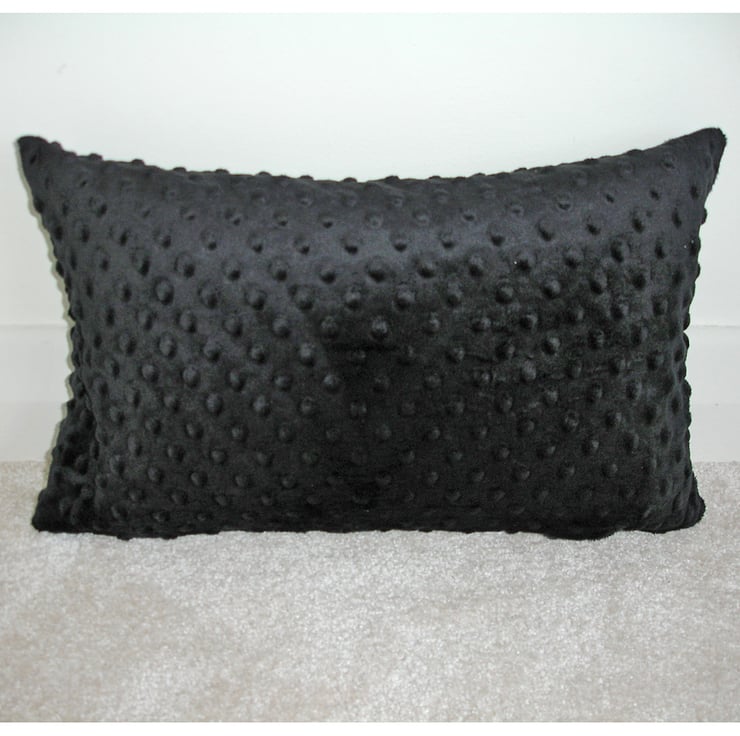 A beautifully soft ' Cuddlesoft ' plush minky fleece fabric with tactile raised spots in black.