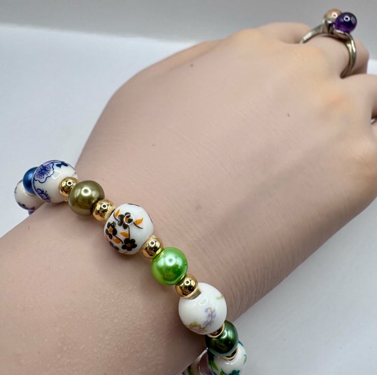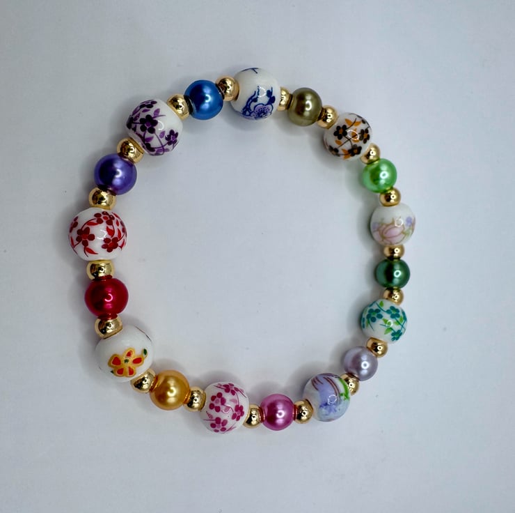 Ceramic and glass bead elasticated bracelet - 5.5'' (Small) elasticated bracelet.