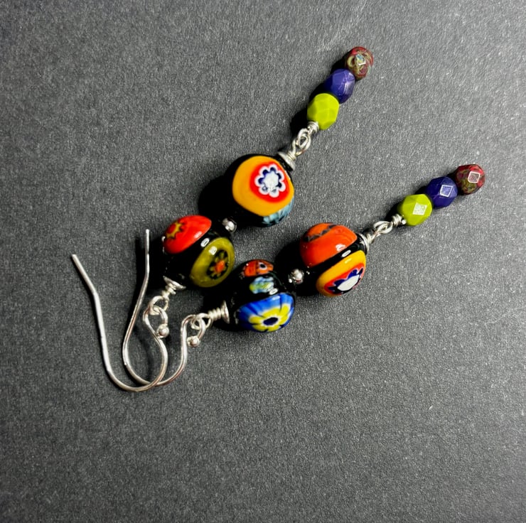 Venetian Murano multi coloured Millefiori earrings -