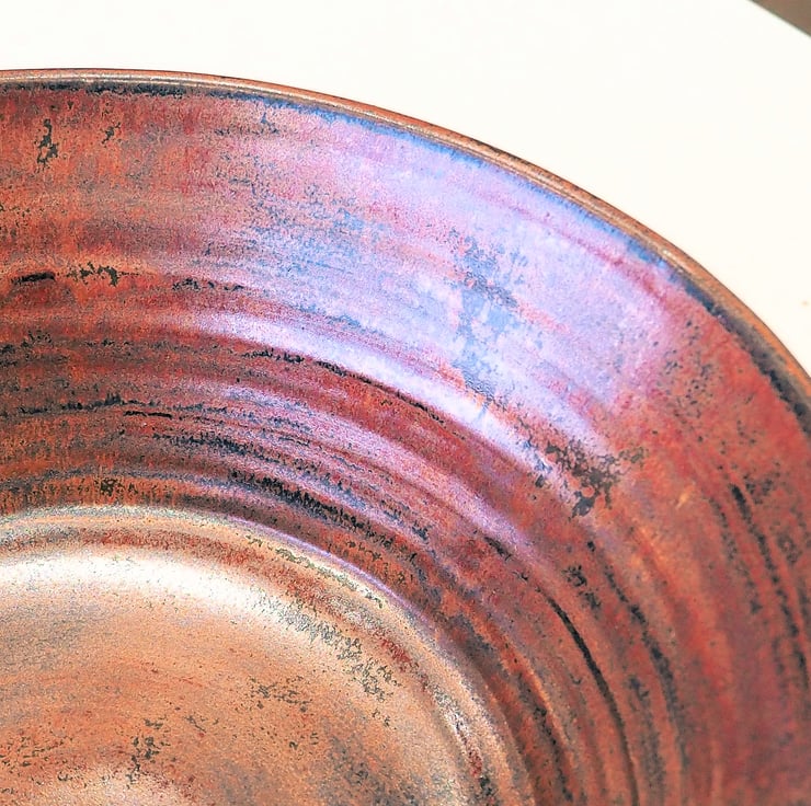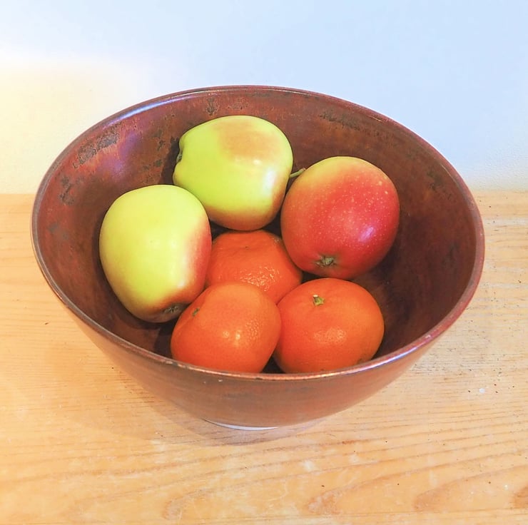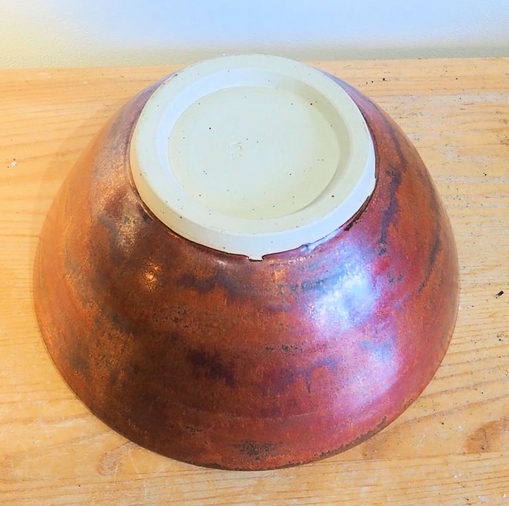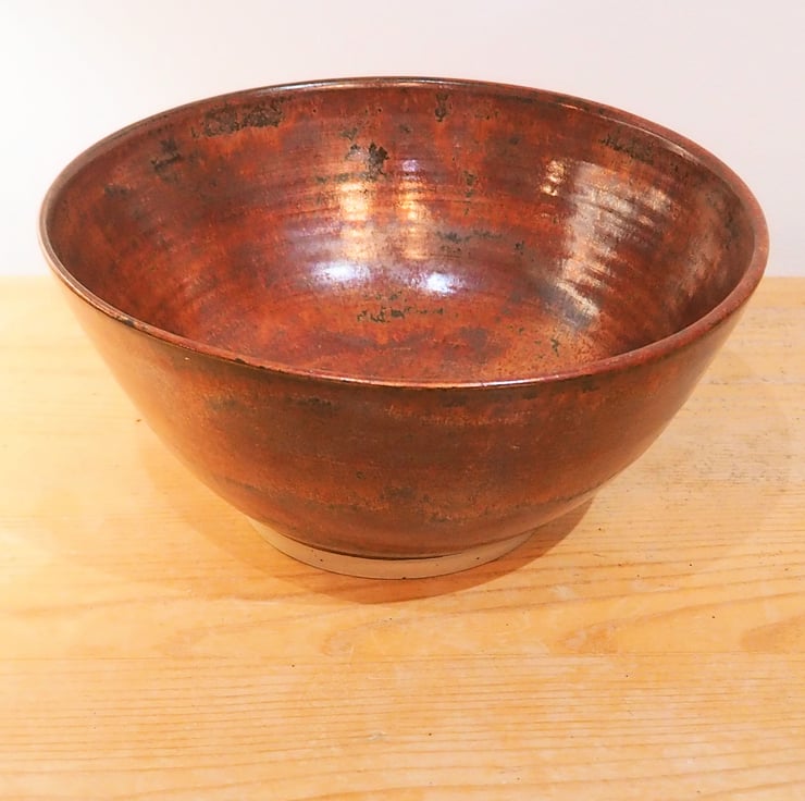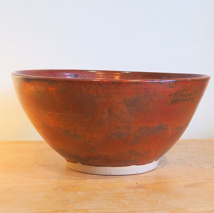 Stoneware bowl great for a fruit bowl, serving bowl or as a large ramen or pasta bowl. Hand made thrown on my potters wheel in a copper red glaze