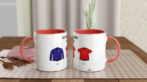 I use 11oz ceramic mugs with coloured handles and insides, and sublimate my hand drawn prints onto the mugs. The mugs are fully microwavable and dishwasher safe!