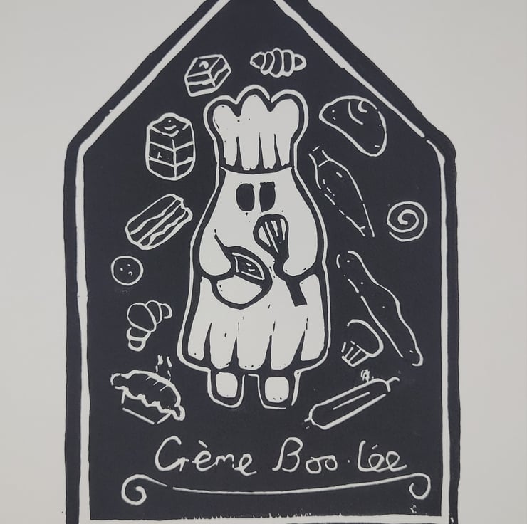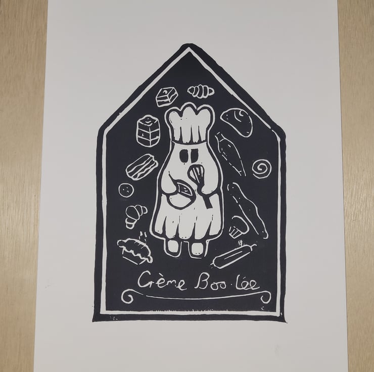 Creme Boo-lee Ghost A4 Lino Print