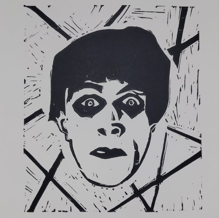 Depicting Cesare from the classic The Cabinet of Dr Caligari movie, this print has been hand-drawn, hand-carved, and hand-printed by me in my attic studio in Sheffield.