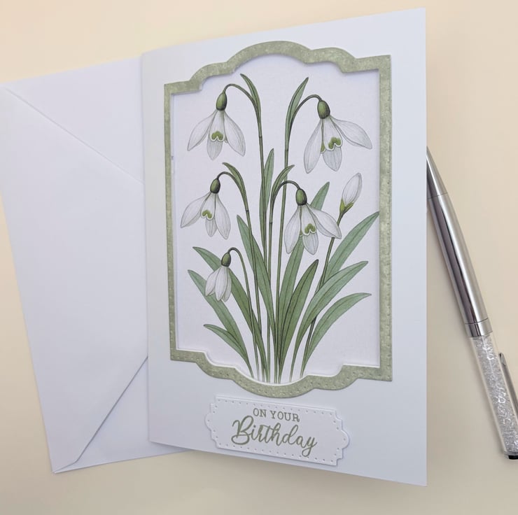 Celebrate a special birthday with this delicate Snowdrop botanical card, inspired by January's birth flower.