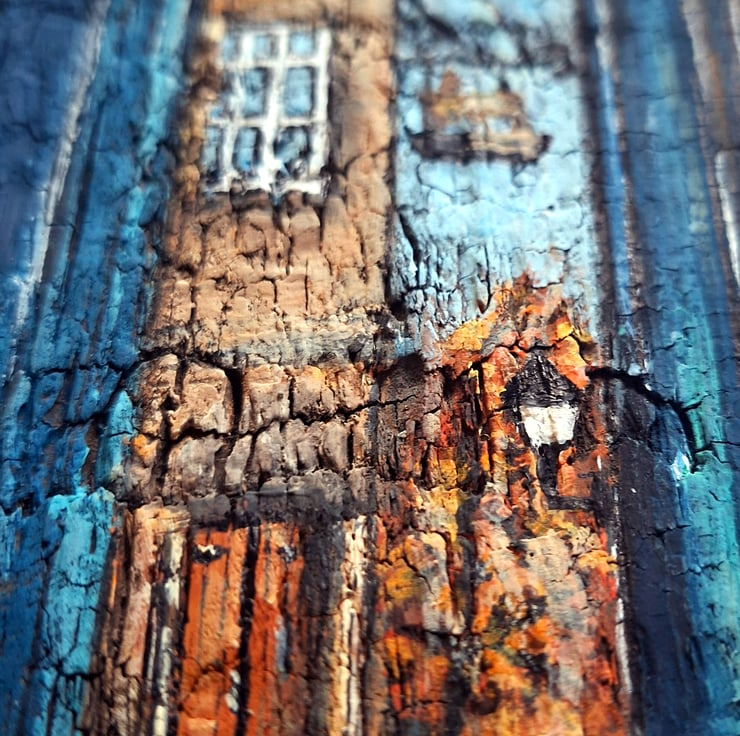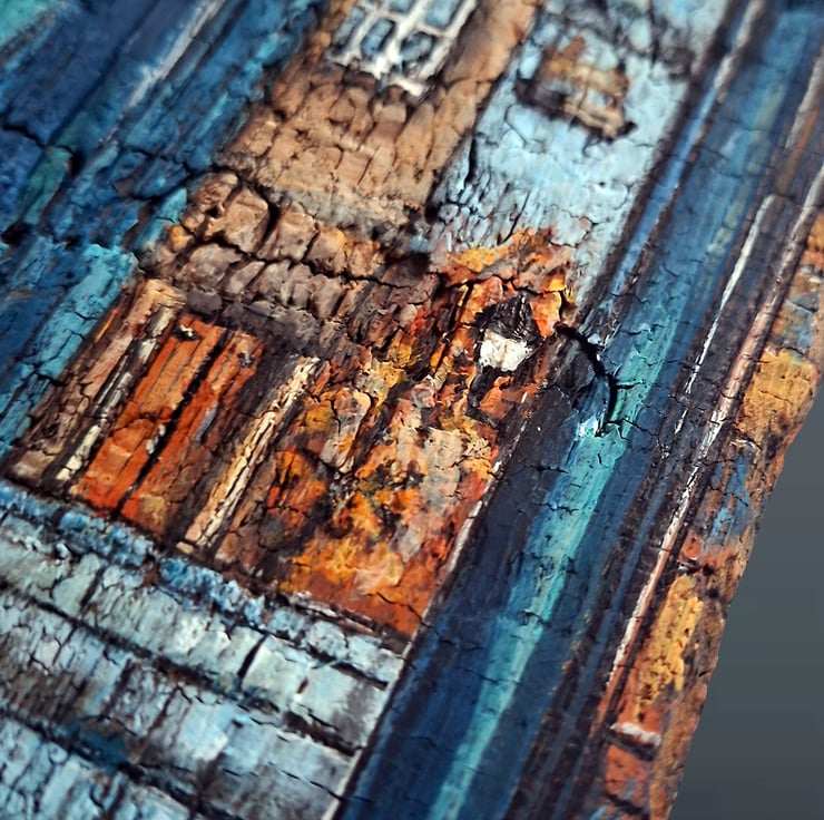 I was inspired by the mysterious atmosphere of Edinburgh’s old alleys. I used the natural cracks in the wood to match the ancient stone walls of the city. My goal was to show the contrast between the cold, dark shadows and the warm light of history.