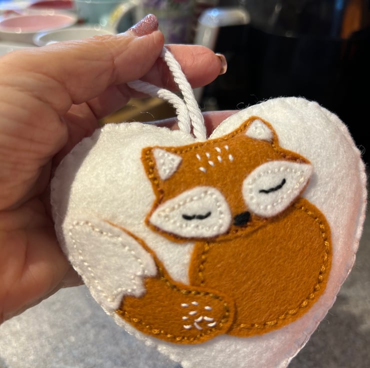 Gorgeous heart shaped felt sleeping fox hanging decoration