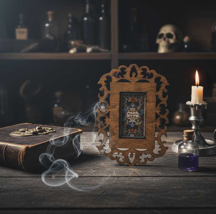 Elevate your home decor with this enchanting Wooden Brown Frame with Picture. Featuring a rich, decorative aesthetic, this piece by Kate and Fate is perfect for those who love vintage-inspired art with a touch of the unknown.