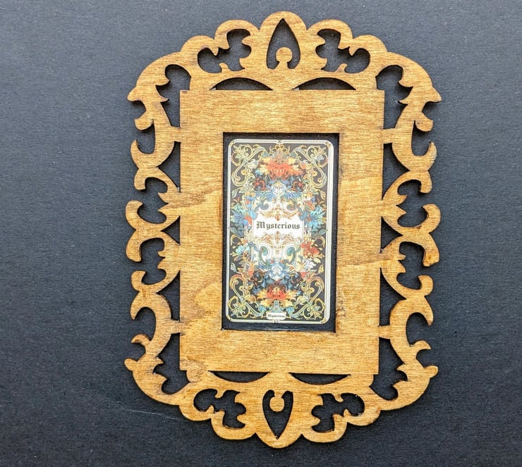 Ornate Brown Wooden Frame with 'Mysterious' – Gothic Wall Decor – 15cm x 11cm