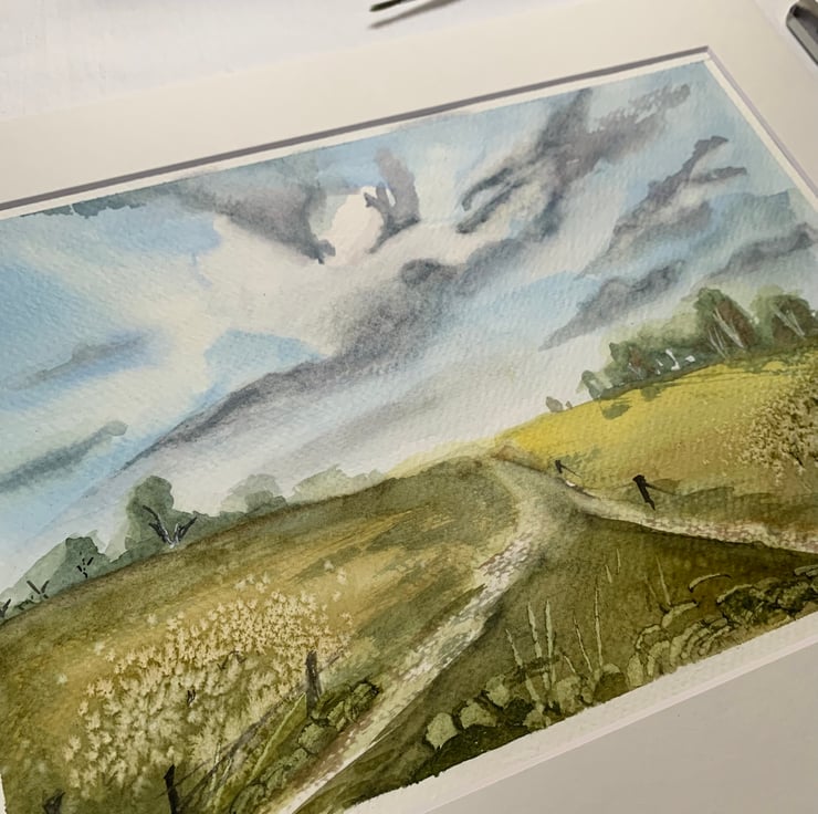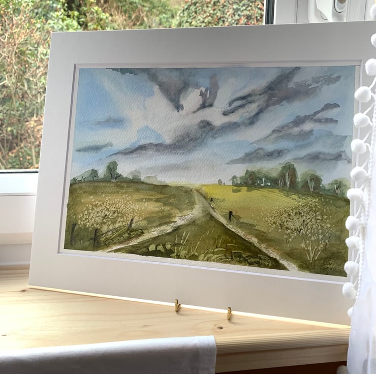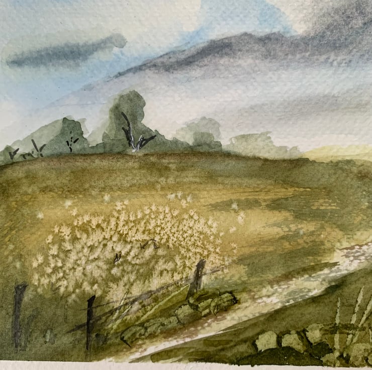 Handpainted Original Watercolour Art - Sunny Field