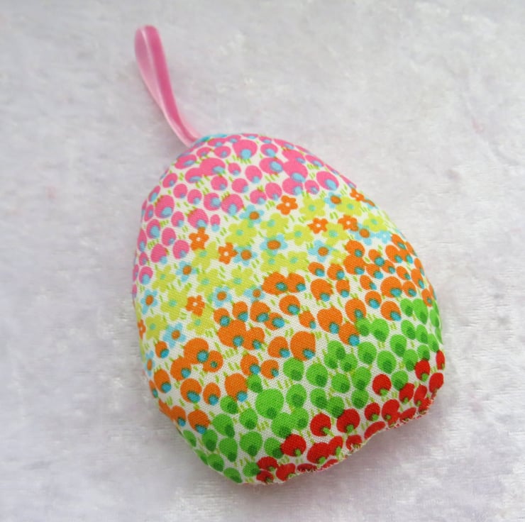 This Liberty cotton Easter egg measures 9.5cm in length, excluding the ribbon loop.