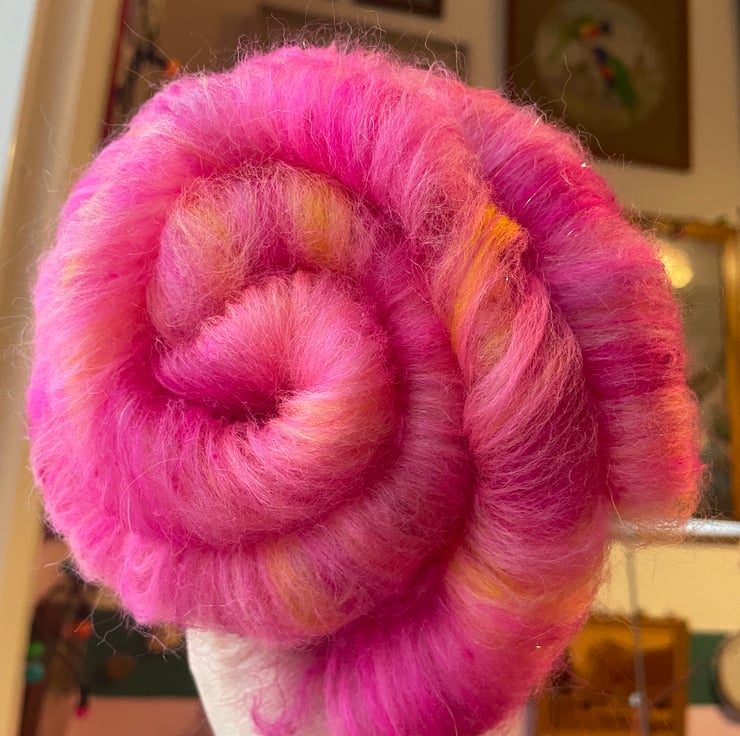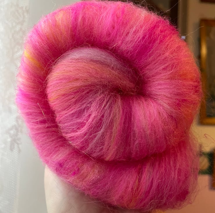 A blend of ‘the pink and yella fella’ & pinky promise, two of my original colourways, reimagined into a beautiful heathered batt that will be an absolute joy to spin.