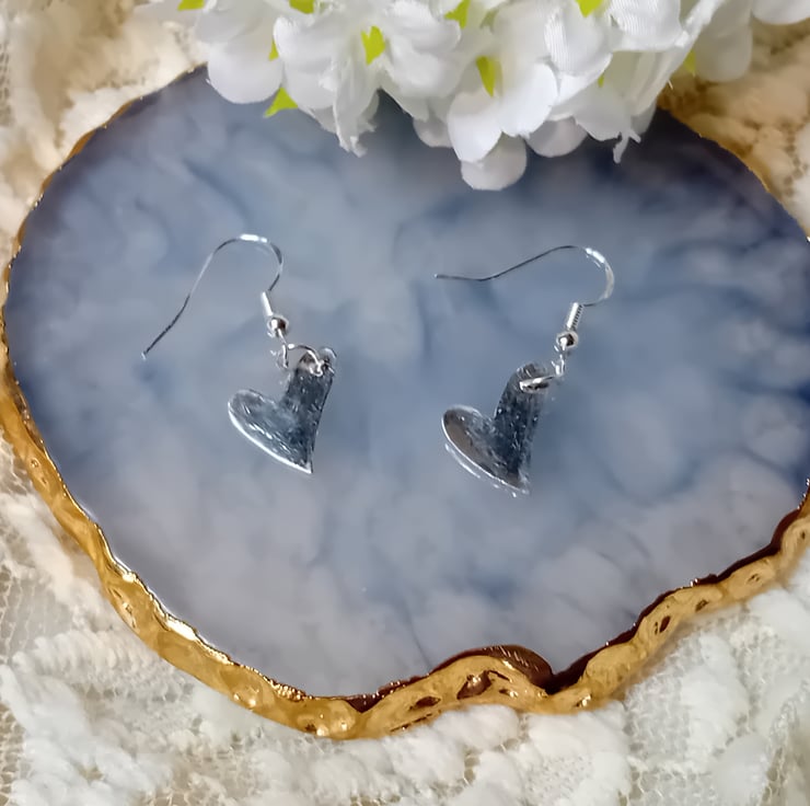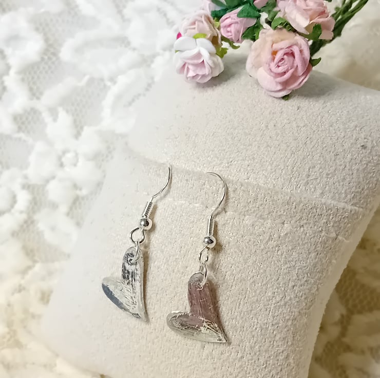 These stunning earrings are hand crafted Hearts made with Sterling Silver (stamped), the hooks are Sterling Silver (stamped). They will come with silicon backs for safety, as loosing an earring is just something we don't want to do. The Hearts measure 1/2 inch by 1/2 inch. They will come with a polishing cloth and with a Faux Suede gift or storage bag. You can also purchase a gift box if preferred. They will come posted by Royal Mail Tracked 48.
