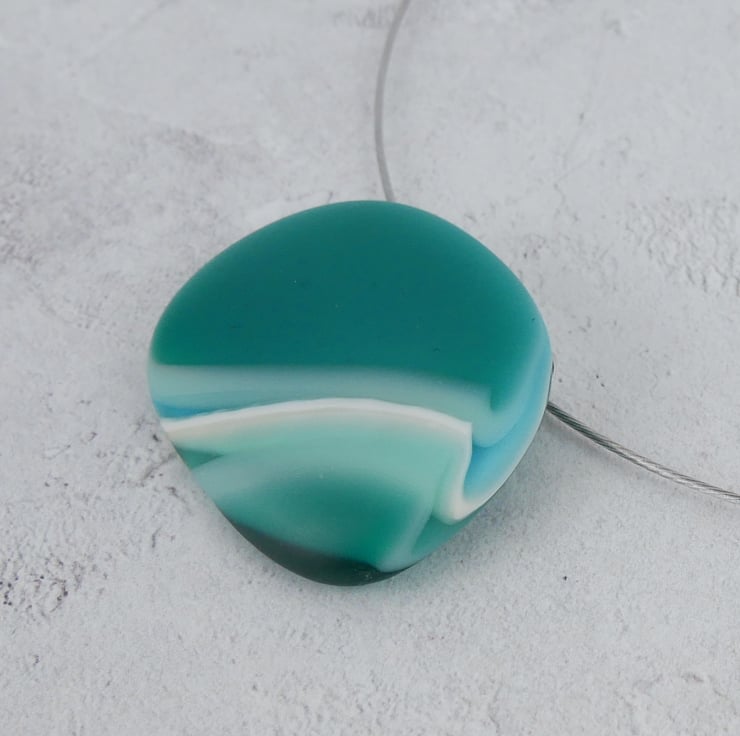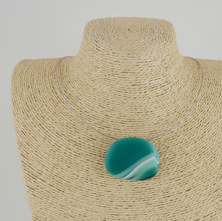 The smooth pebble shaped glass pendant was created from multiple layers of coloured glass fused together in my kiln, and has an irresistibly tactile matt surface just like seaglass.