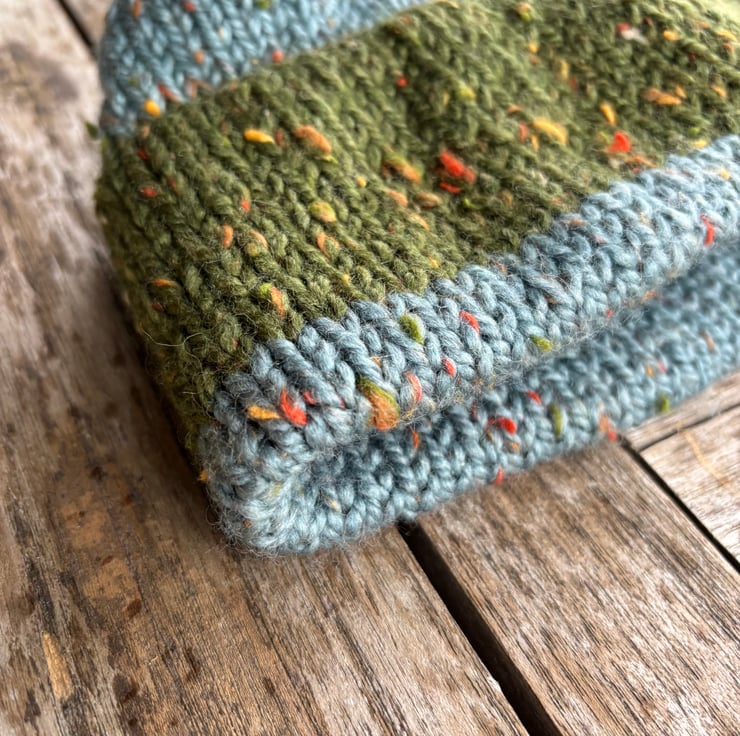 This cosy beanie hat has a double thickness brim for extra warmth and is made from a soft, non-itchy, chunky yarn.