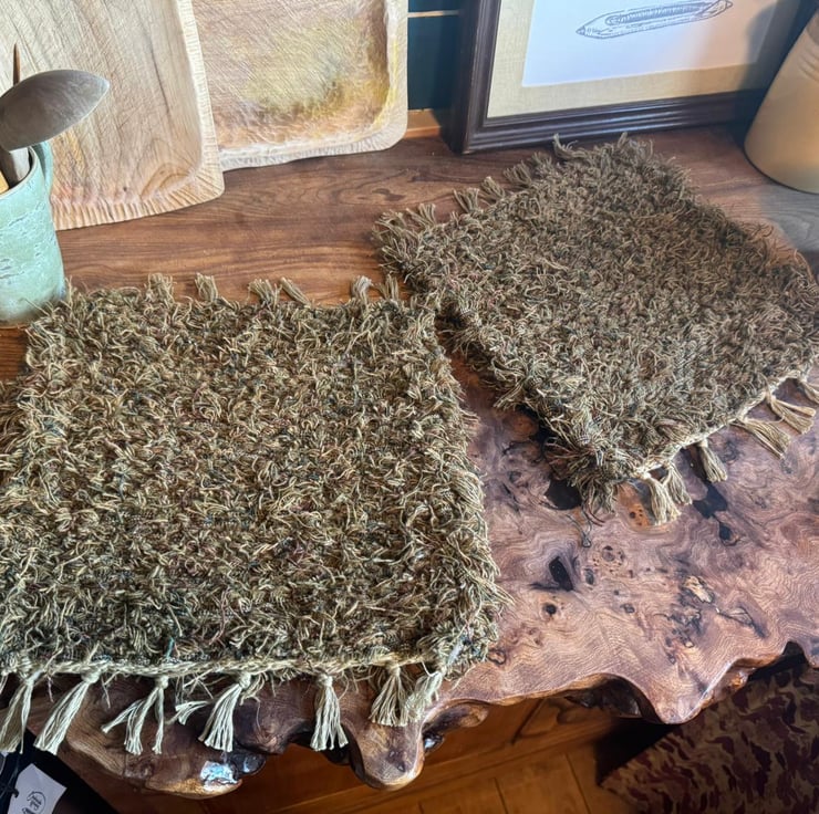 These table mats were carefully hand woven on my beautiful vintage floor loom. Made from raw edge, tweed selvedge, here in the far north Scottish highlands. I use an organic cotton warp, sustainably sourced. they would surely look stunning on any table.