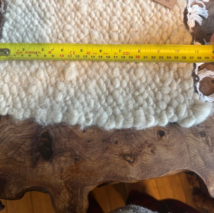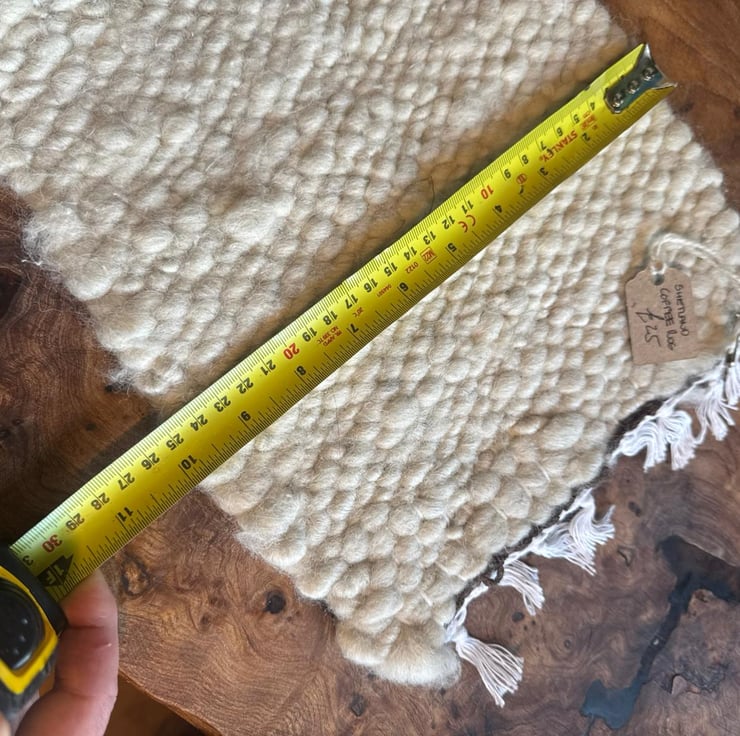 Hand woven using hand spun yarn and with organic cotton warp, this rustic table rug is made from beautiful shetland wool. Hand processed by me from raw wool to finished product.