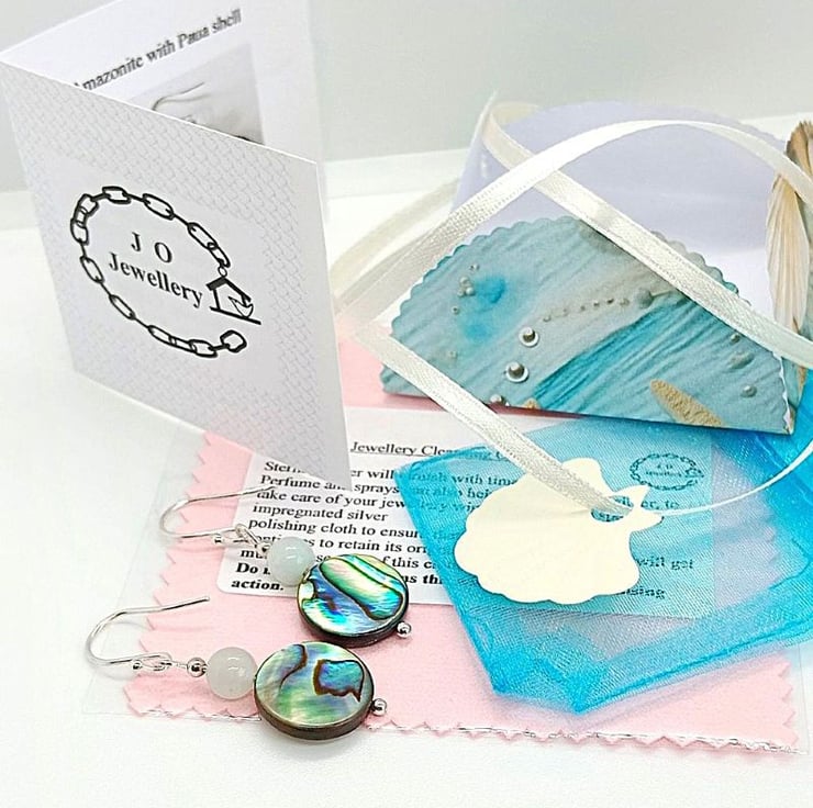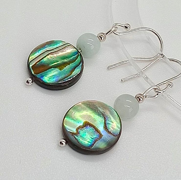 Amazonite and Paua Shell earrings sterling silver