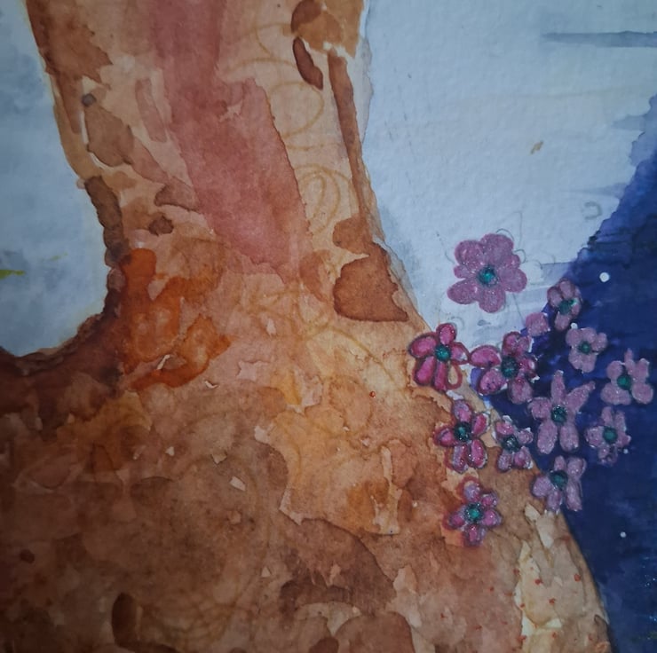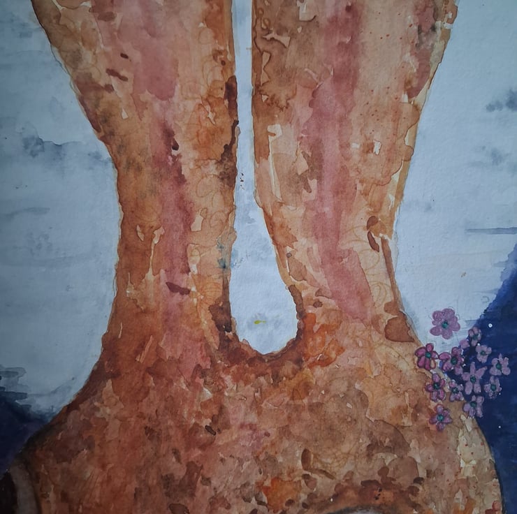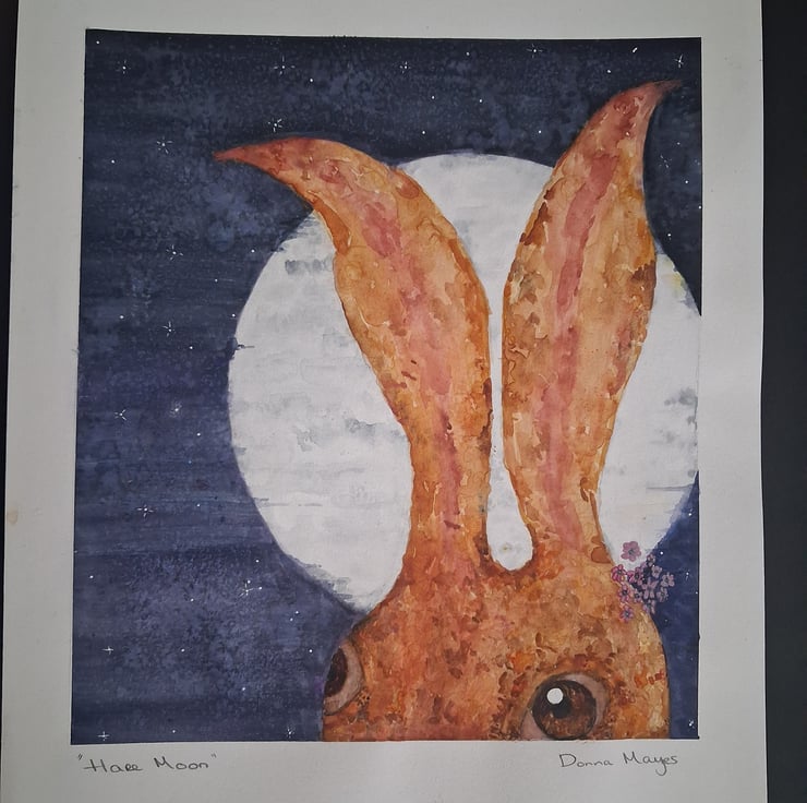 The "Hare Moon" appears in the sky in May. This orginal water colour represents new beginings and good fortune that the "Hare Moon"brings.