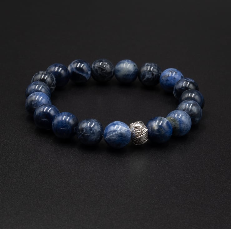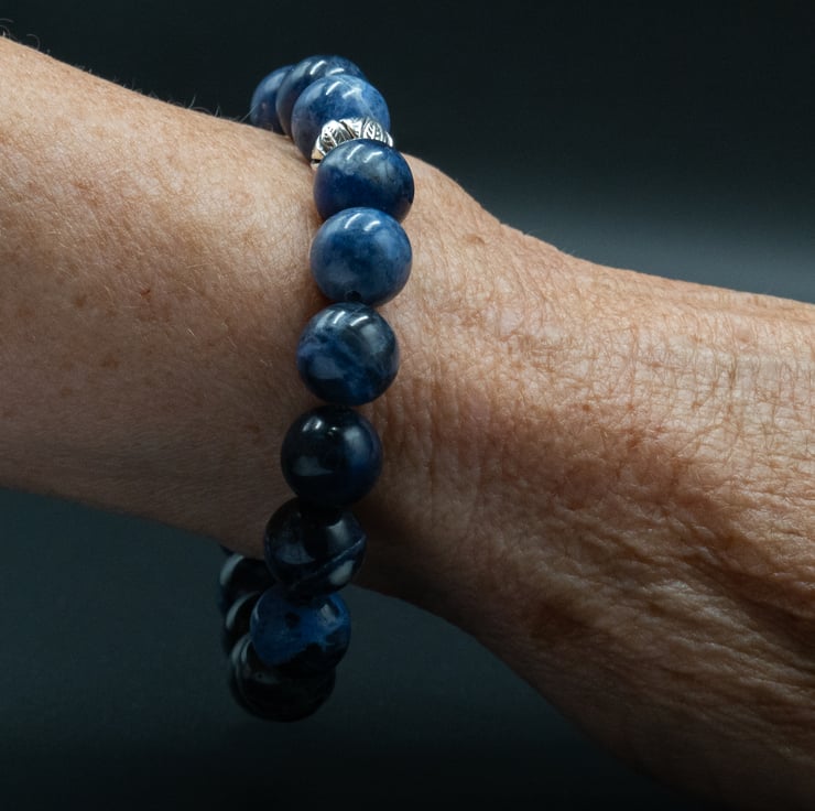 Sodalite is a great stone to mix with denim, a great stone choice for a casual look.