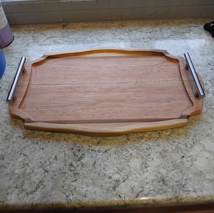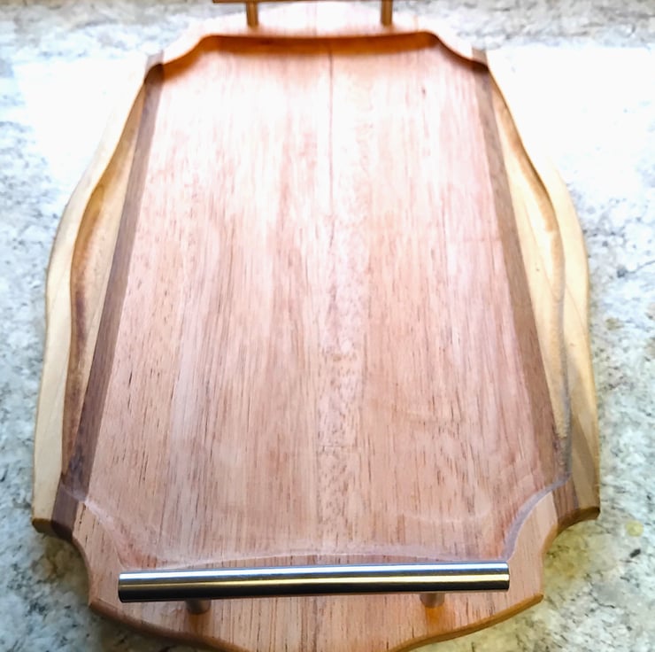 mixed wood serving tray stainless steel handles breakfast dinner lunch snacks