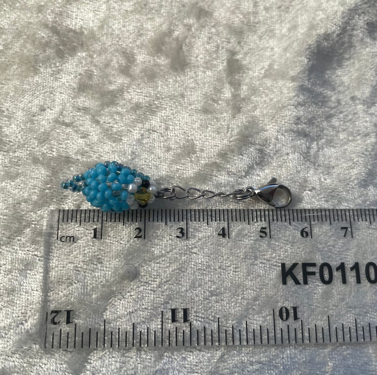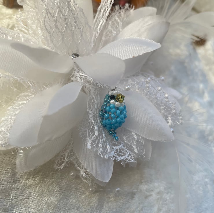 This lovely budgie is made by hand sewing with Japanese seed beads.