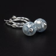 These earrings are made with 10mm smooth round denim blue beads which are topped and tailed with sterling silver bead caps and a bead at the top. The drops hang from a pair of sturdy sterling silver hoops with a secure latch closure.
