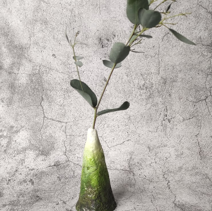 Entirely handmade and hand painted little mountain shaped clay bud vase. Like most of my work, this piece is one-of-a-kind and inspired by natural landscapes and organic form, with lots of earthy green and stone tones and plenty of texture.