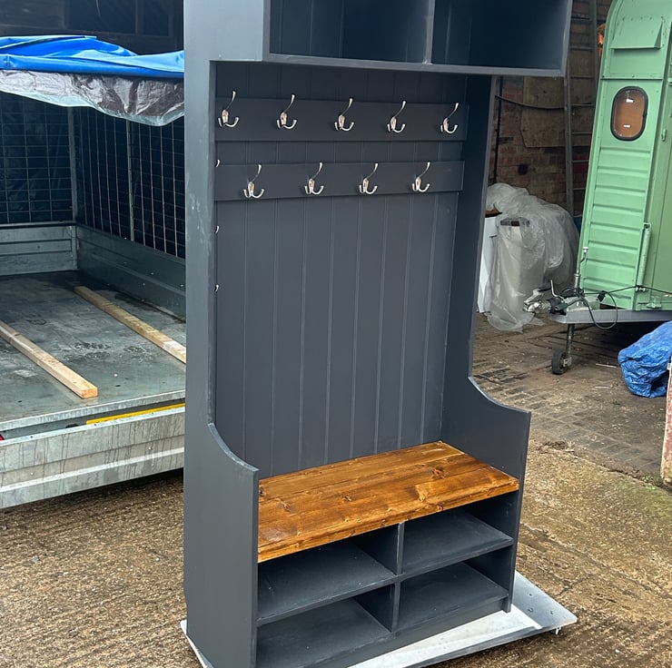 Bespoke hall Coat unit with pigeon hole base and storage over head
