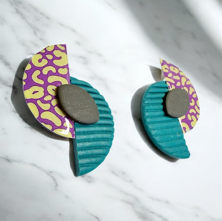 Inspired by playful retro shapes and modern art jewellery, each pair is individually handmade — no two are ever exactly the same.