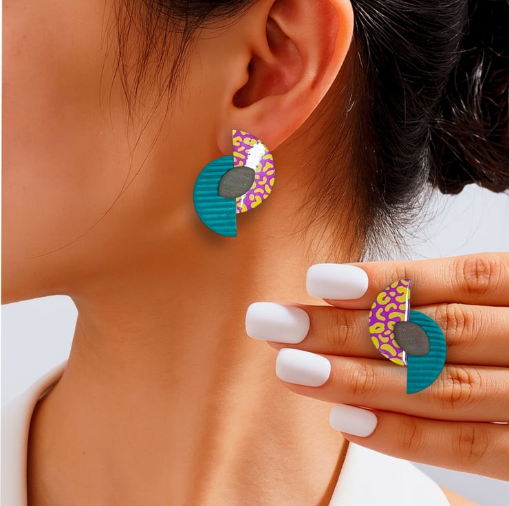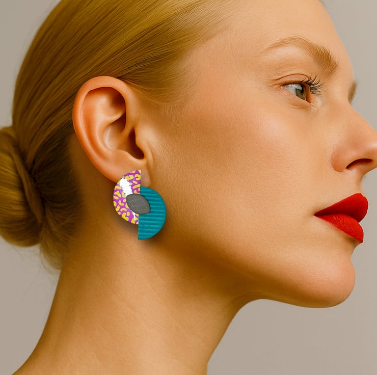 80s earrings align with mid century Memphis style