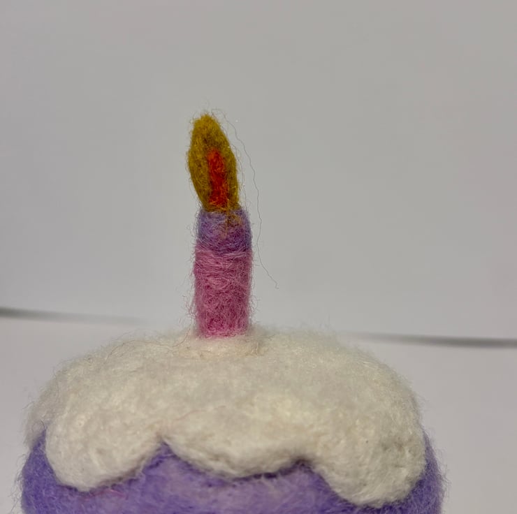 Handmade birthday cake made with wool.