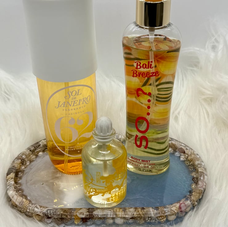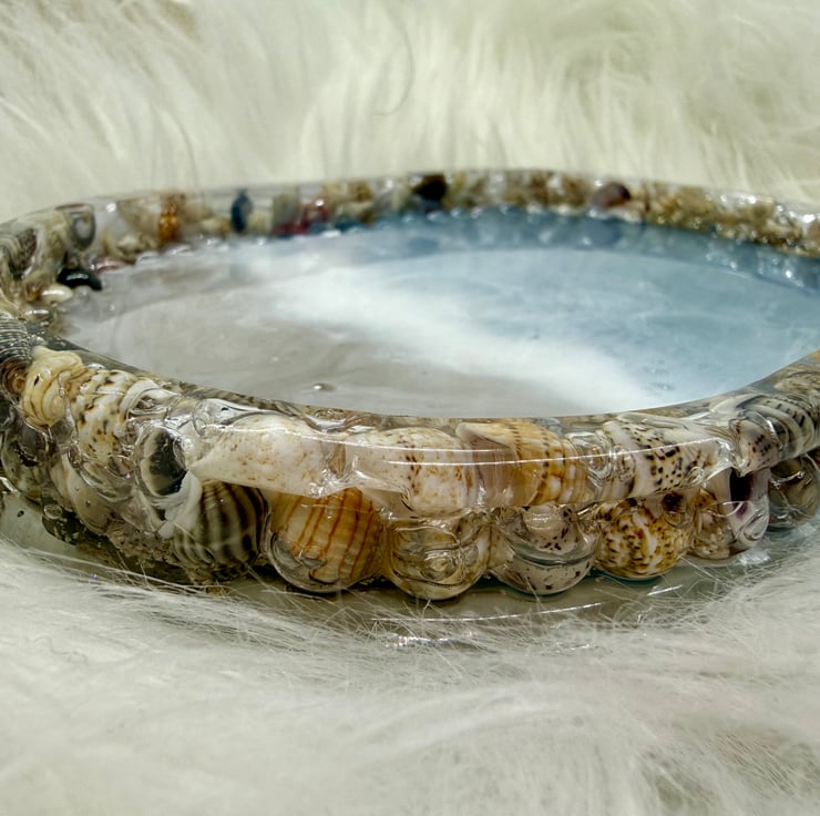 This resin tray has real seashells in the sides and a seascape of resin inside. Perfect for any dressing table to hold make up, candles, jewellery etc