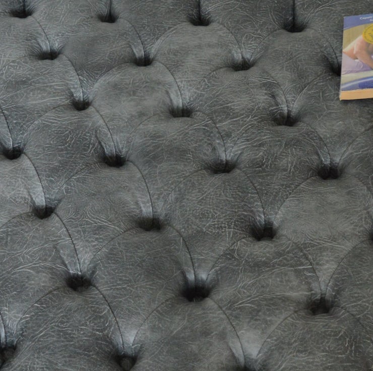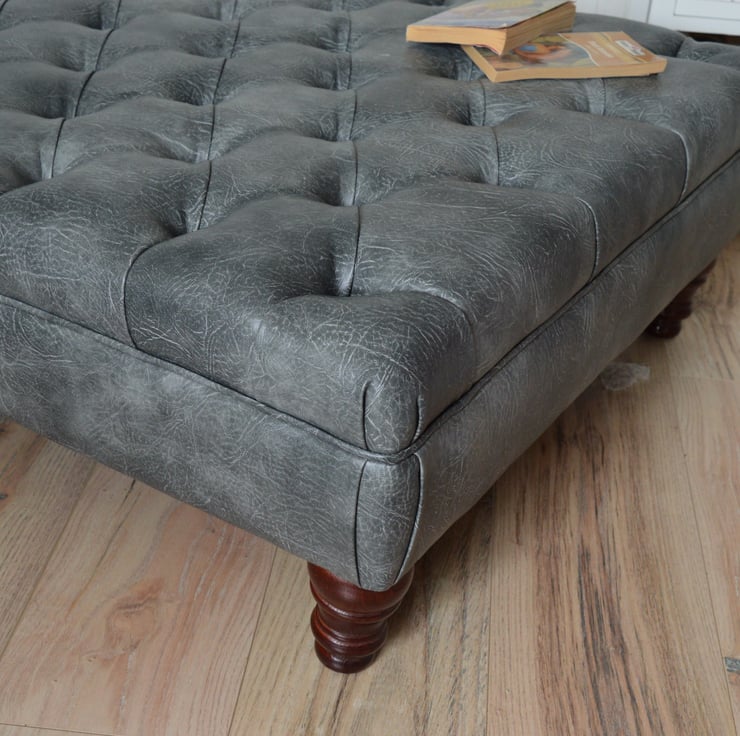 Extra Large Chesterfield Design Button Footstool in Premium Faux Grey Leather