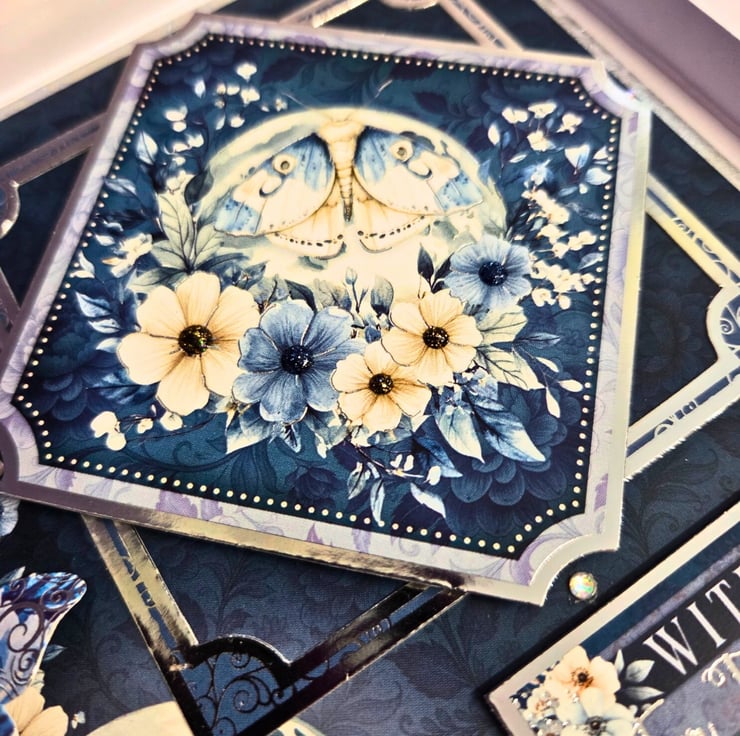 Handmade by "The Sloth's Cavern" using the Hunkydory "Flattering Moonlight" Collection.