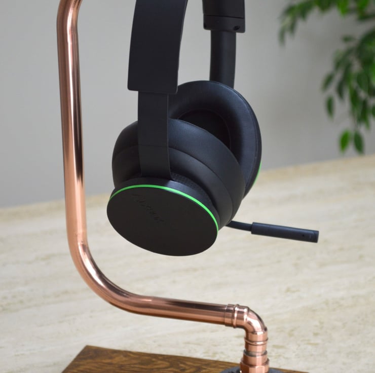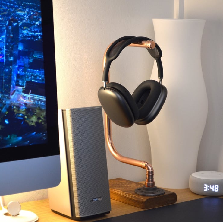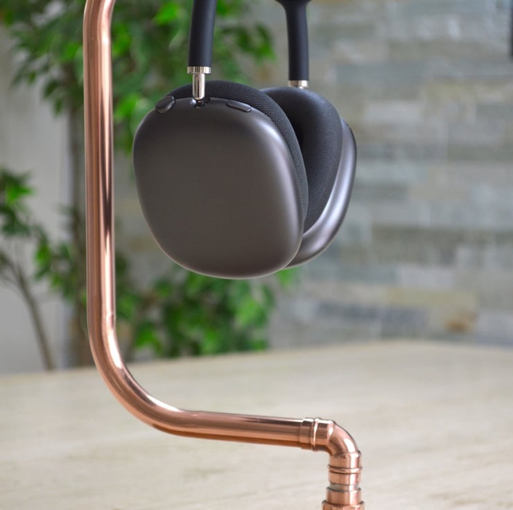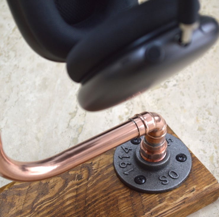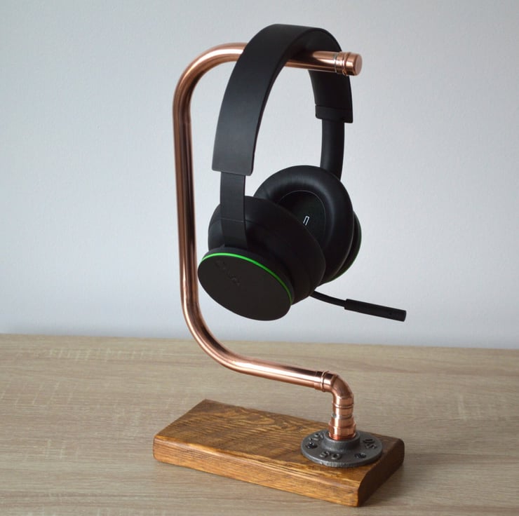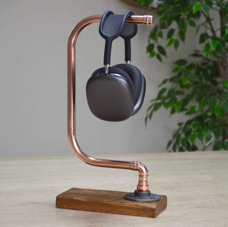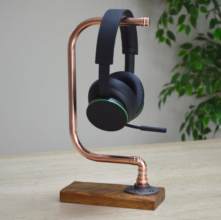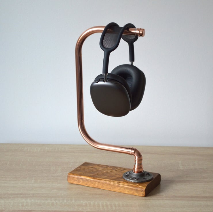 Keep your headphones neatly stored and beautifully displayed on this handcrafted copper and wood headphone stand.