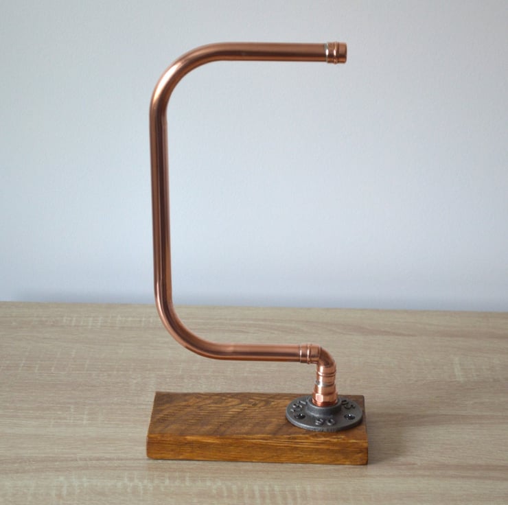 Constructed from soldered copper pipe, mounted with a cast iron fitting on a repurposed wooden base finished with a dark oak varnish, this stand combines industrial and rustic character with practical everyday use. As each piece is made by hand, natural variations in the wood and copper finish are to be expected. The wood used and the colour of the screws will differ from those shown in the photographs.