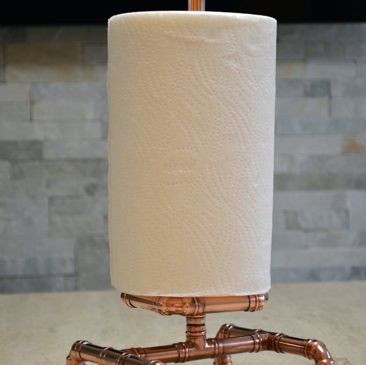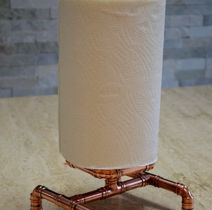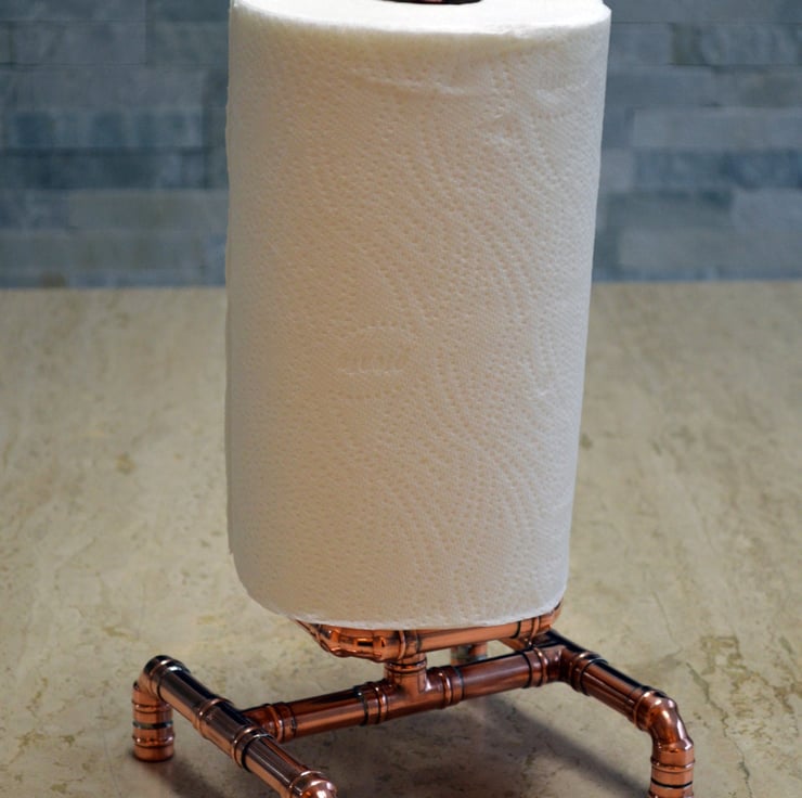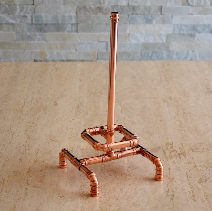 Store your kitchen roll neatly with this handcrafted copper kitchen roll holder, made from soldered copper pipe for strength. Designed to be both stylish and functional, making it a natural addition to industrial, minimalist or copper-accented kitchens.