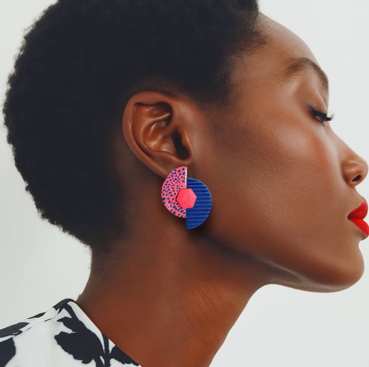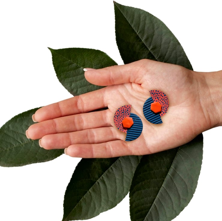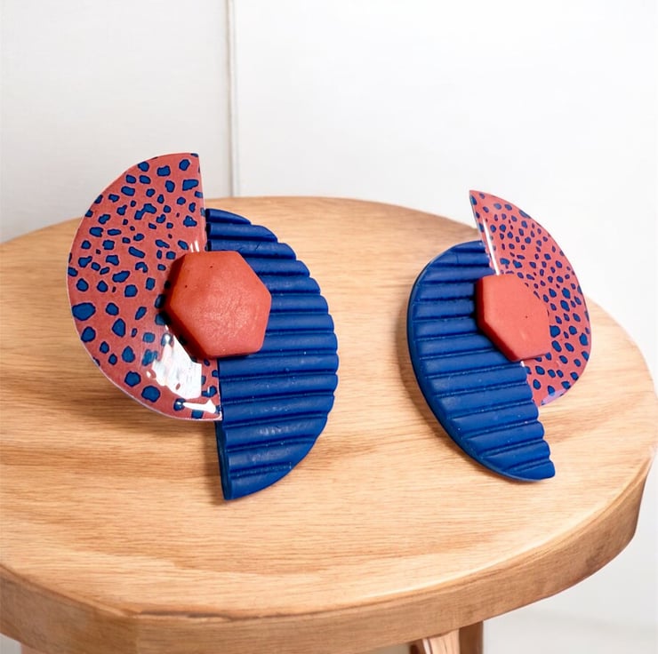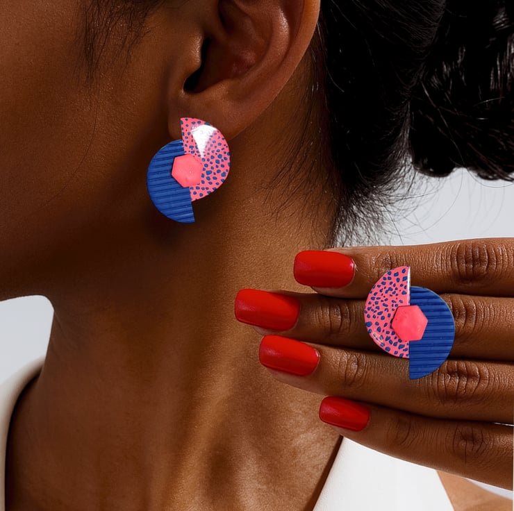 Bring a burst of colour and confidence to your look with these bold geometric polymer clay earrings.