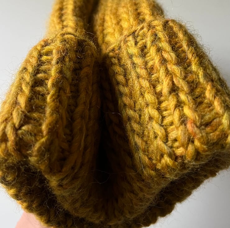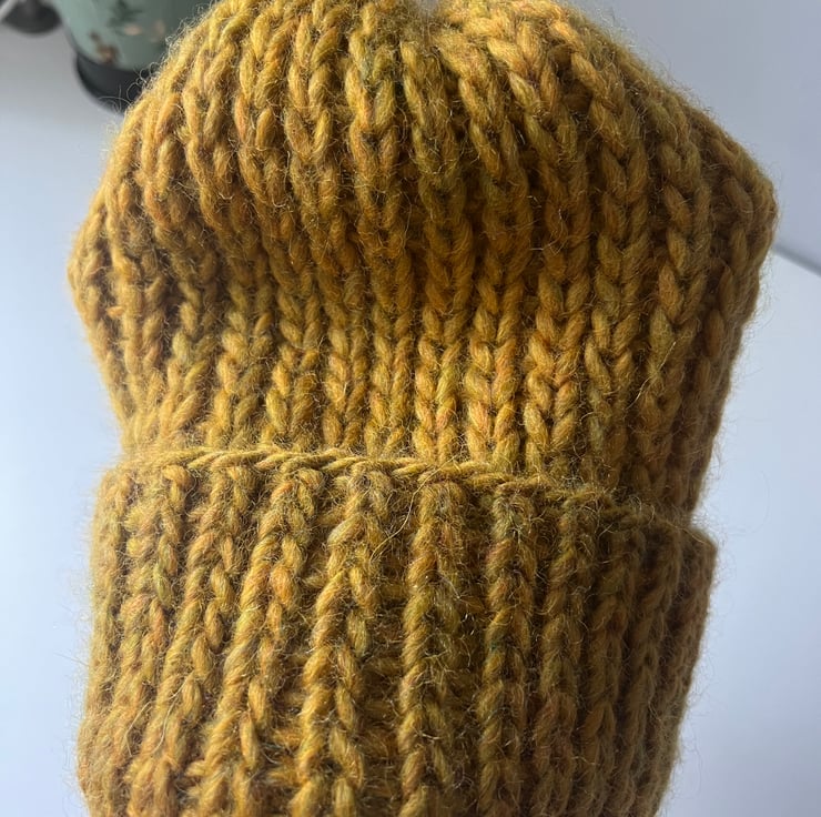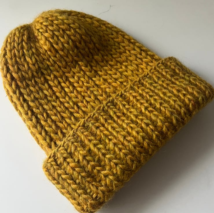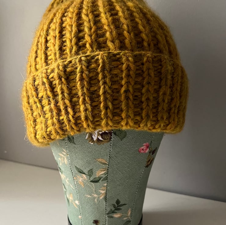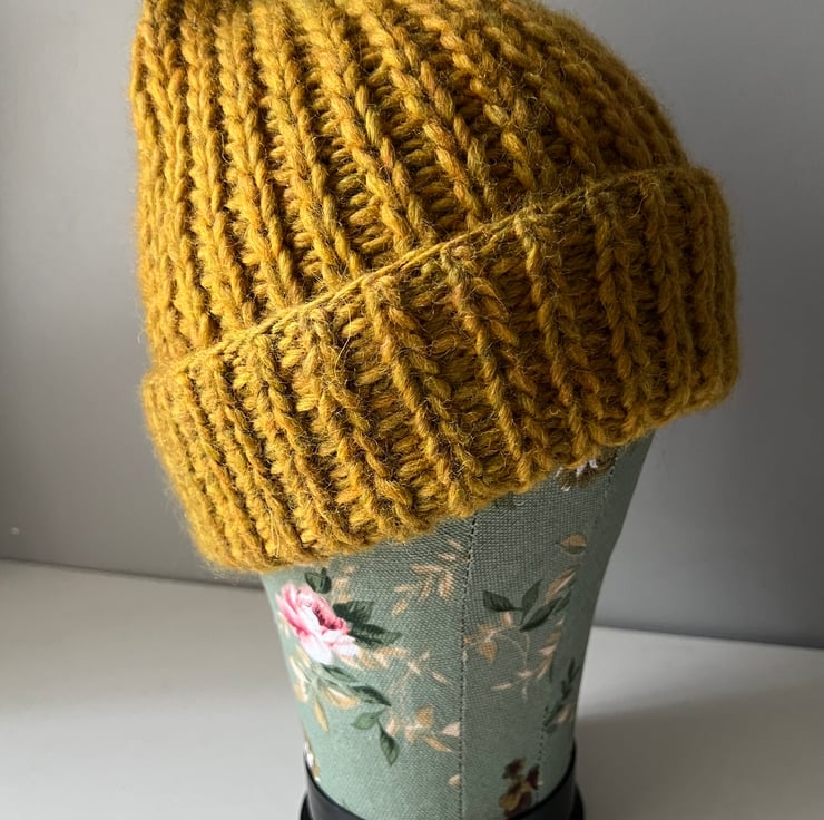 This warm hat is hand-knitted from 100% wool (drops snow yarn), making it perfect for the winter season. The beanie style hat in size 56 cm is designed for women and features a curry colour, adding a touch of vibrancy to your winter wardrobe. Hand wash only at 30 degrees.