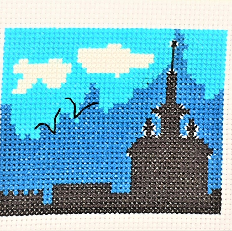 3: Cathedral style rooftop with Birds: 8.5cm x 7cm (approx 3.5" x 3")