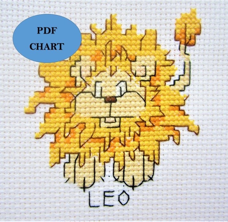 An original design of a Leo theme star sign small cross stitch in PDF format for instant download.