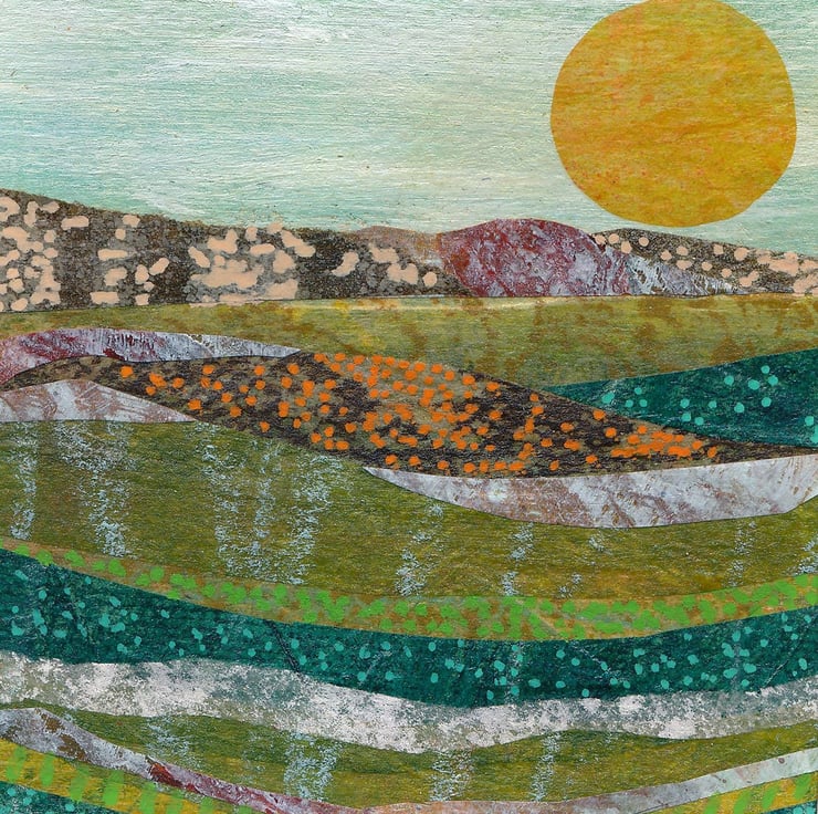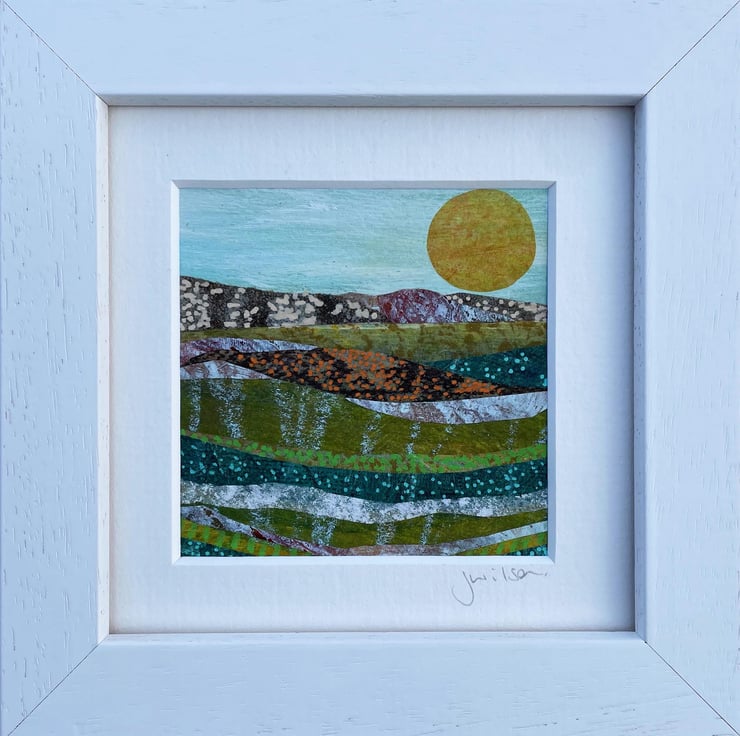 How I made it - if you know me and my work (Jane Wilson Artist is how you find me on the internet or social media) you'll know I am a mixed media artist who uses a lot of collage in her work. These smaller pieces are a great way to use up the pieces of collage left over from larger paintings. I layer everything and then add details with paint and art pens at the end.