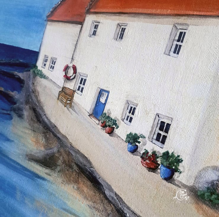 I'm inspired by the feeling of stepping back in time as I stroll past these historic cottages. On this canvas, I wanted to capture the distinctive Scottish tranquility and timeless beauty of a place where everyone, regardless of background, feels at home.