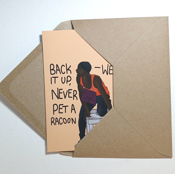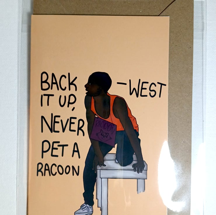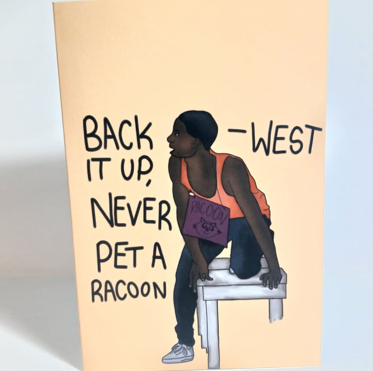 My digital illustration of Wests 'Racoon' scene in The Next Step. Orange background. Available as prints.