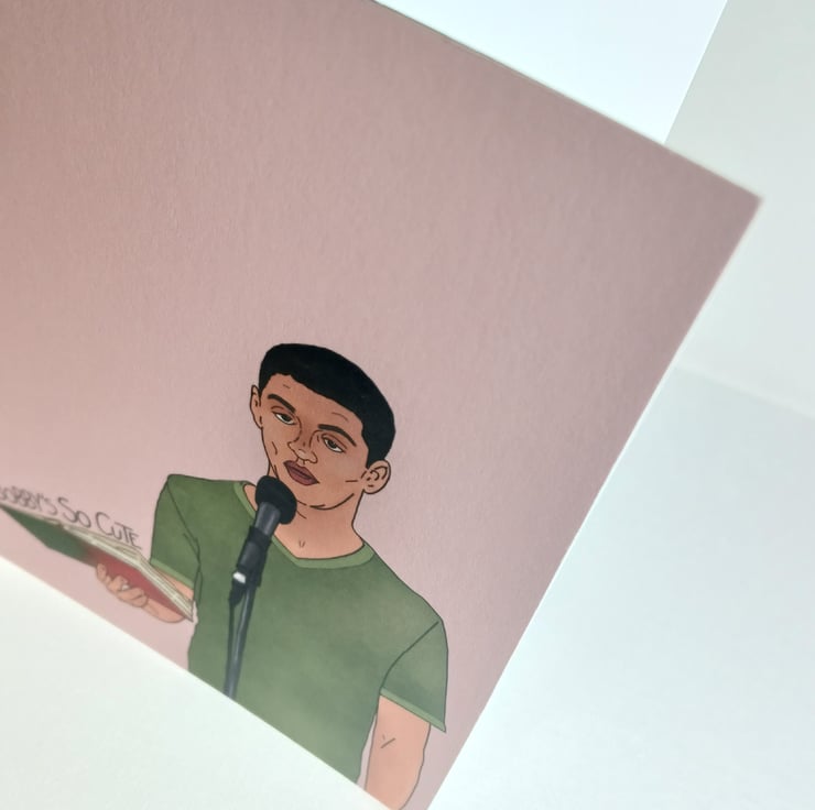 My digital illustration of James' speech in S2 of The Next Step, with quote. Mauve background. Also available as prints.