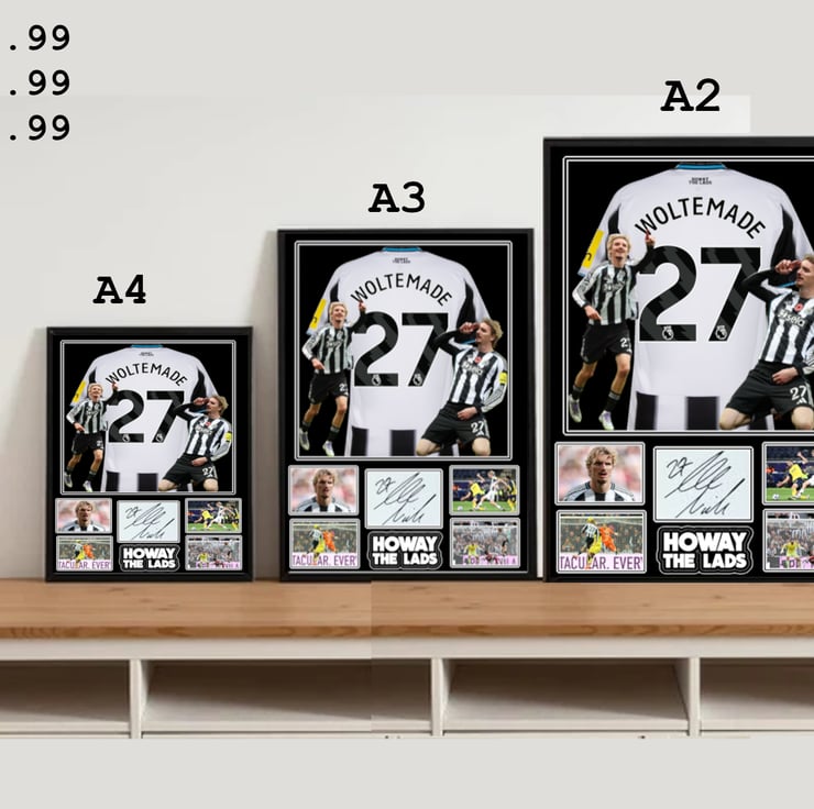 NICK WOLTEMADE NEWCASTLE UNITED SIGNED FRAMED A4