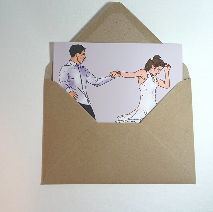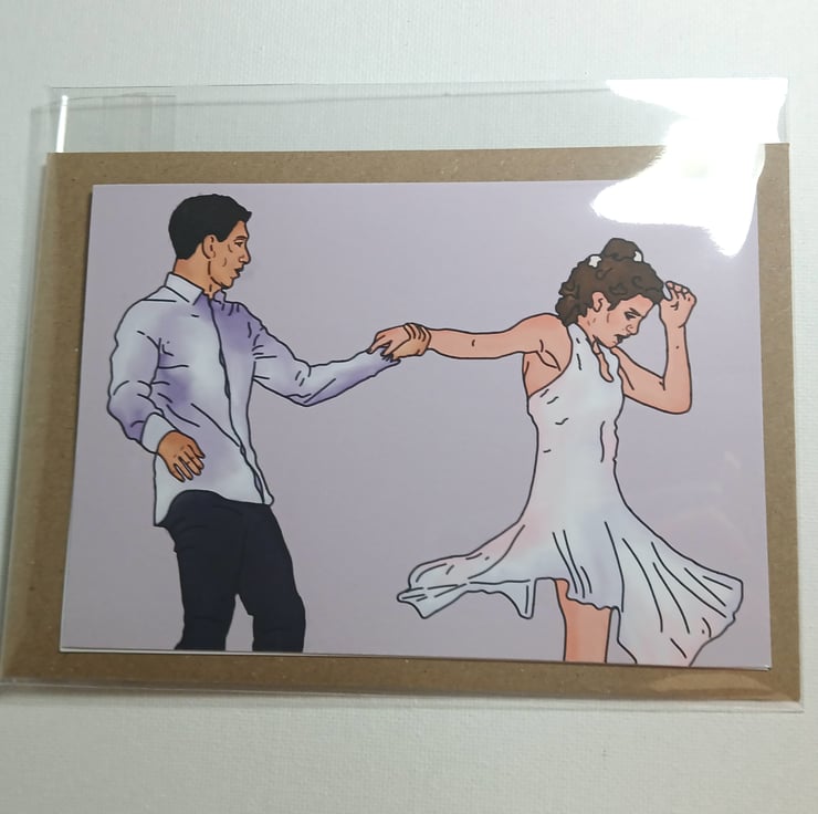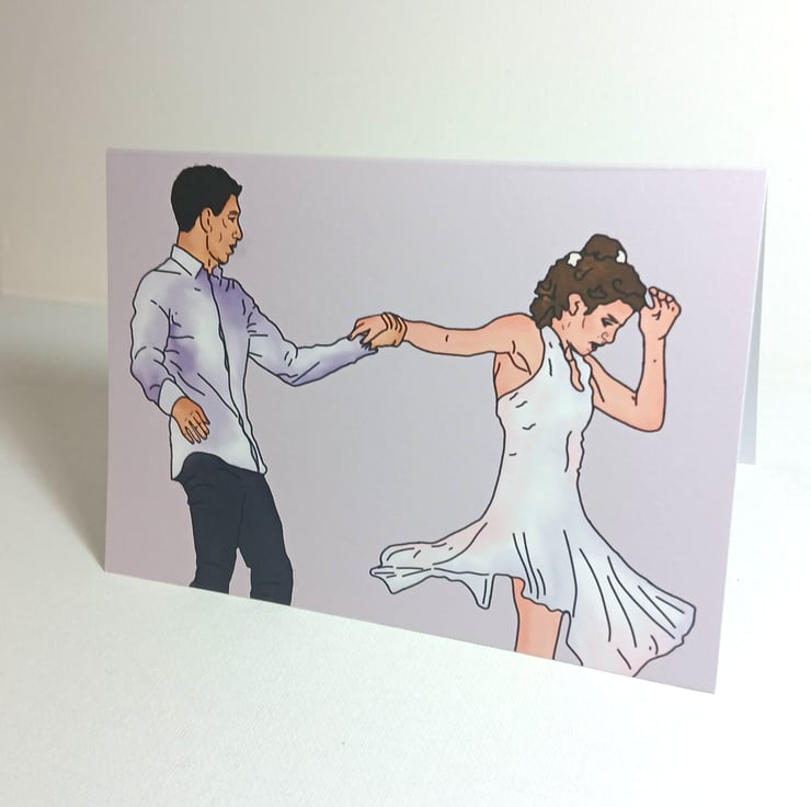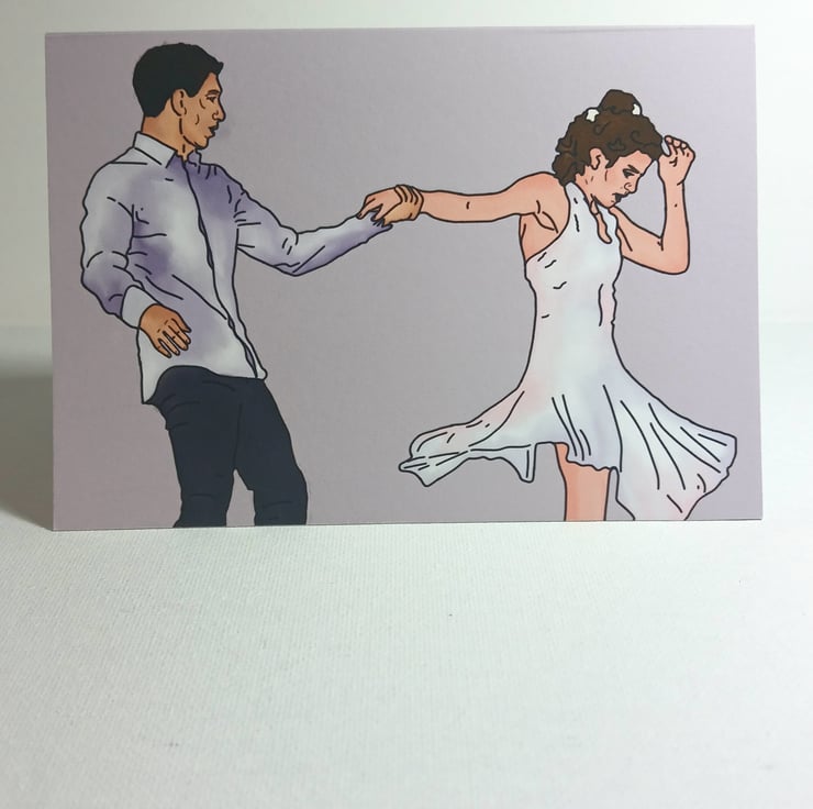 My digital illustration of Jiley 'flying' in The Next Step, with quote. Mauve background. Also available as prints.