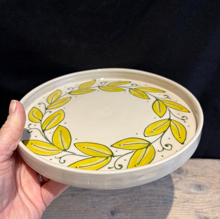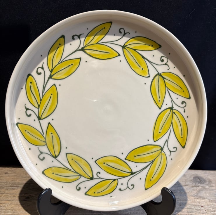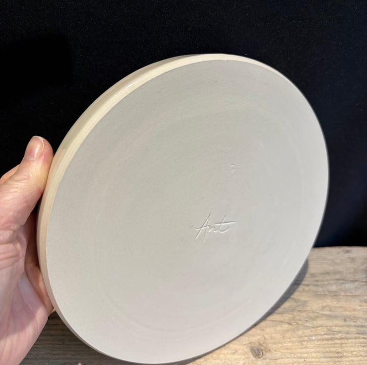 This hand-painted plate was thrown on the potter's wheel, made from high-fired stoneware, and makes for a unique addition to your kitchen table.