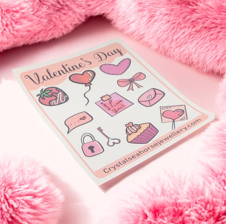 Handmade Valentine’s Day Sticker Sheet – Cute Love Stickers for Journaling & Crafts